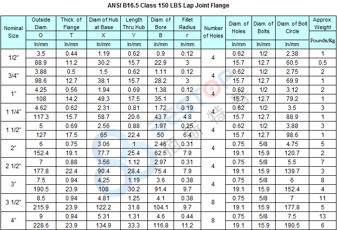 * For other pressure rating or details of ANSI B16.5 ,Please contact with us by Email or Calling.