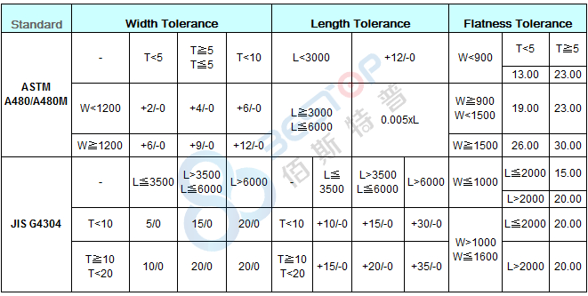 Permissible Tolerance for ASTM A480 ,JIS G4304